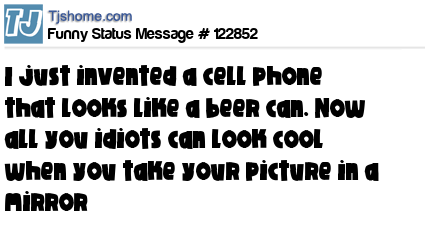 X I just invented a cell phone that looks like a beer can. Now all you idiots can look cool when you take your picture in a mirror