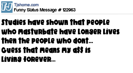 X is Studies have shown that people who masturbate have longer lives then the people who dont... Guess that means my a$$ is living forever...