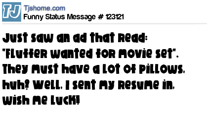 X Just saw an ad that read: "Fluffer wanted for movie set". They must have a lot of pillows, huh? Well, I sent my resume in, wish me luck!