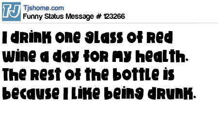 X I drink one glass of red wine a day for my health. The rest of the bottle is because I like being drunk.