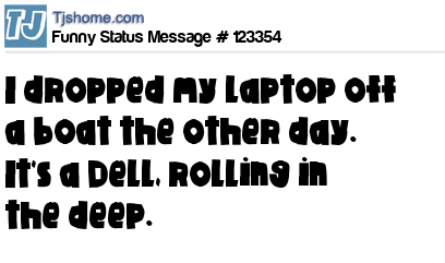- # 83580 I dropped my laptop in the ocean, So now theres a dell rolling in the deep.