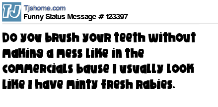 X is Do you brush your teeth without making a mess like in the commercials bause I usually look like I have minty fresh rabies.