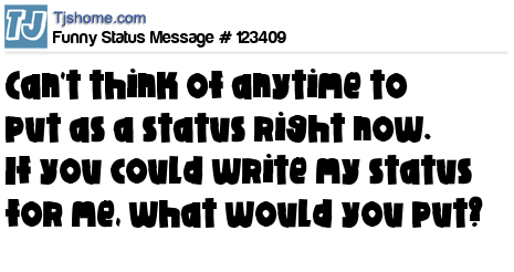 X can't think of anytime to put as a status right now. If you could write my status for me, what would you put?