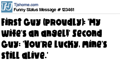- # 51117 My buddy told me "My wife is an angel" I told him "You're lucky! Mine is still alive"