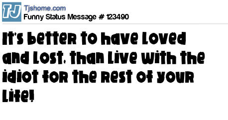 - # 46281 It's better to have loved and lost than to have spent the rest of your life with that psycho. Happy Single Person's Awareness Day!