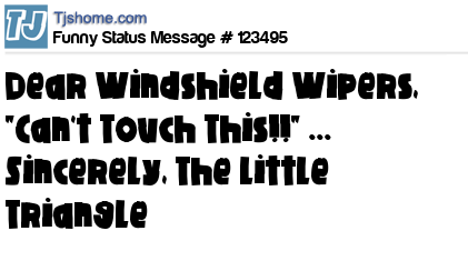 - # 50933 Dear windshield wipers,...You cant touch this.....Sincerely, The triangle