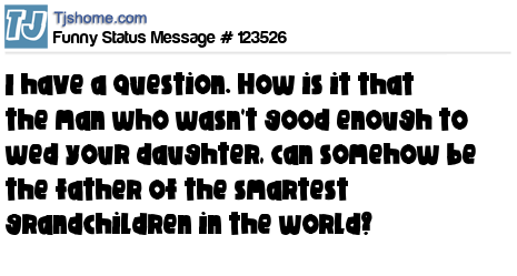 X  I have a question. How is it that the man who wasn't good enough to wed your daughter, can somehow be the father of the smartest grandchildren in the world?