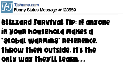X says Blizzard Survival Tip: If anyone in your household makes a "global warming" reference, throw them outside. It's the only way they'll learn.....