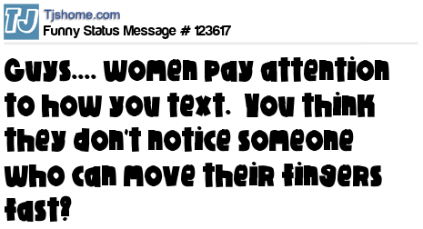 X Guys.... women pay attention to how you text. You think they don't notice someone who can move their fingers fast?