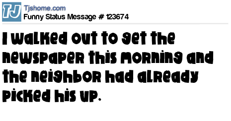 X I walked out to get the newspaper this morning and the neighbor had already picked his up.