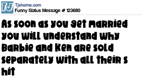 X says As soon as you get married you will understand why Barbie and Ken are sold separately with all their s hit