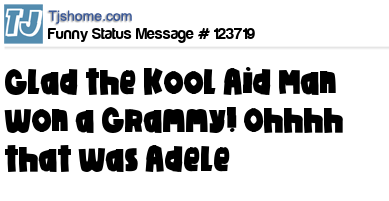 X  Glad the Kool Aid Man won a Grammy! Ohhhh that was Adele