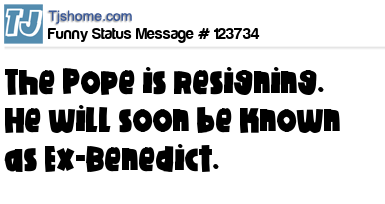 X says The Pope is resigning. He will soon be known as Ex-Benedict.