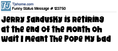 X Jerry Sandusky is retiring at the end of the month oh wait I meant The Pope My bad