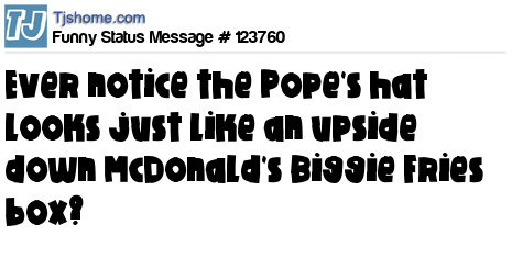 X Ever notice the Pope's hat looks just like an upside down McDonald's Biggie Fries box?