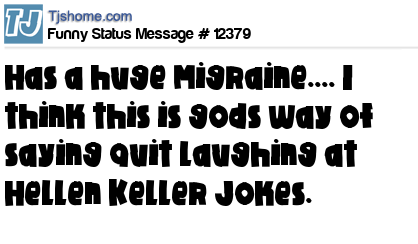 X Has a huge Migraine.... I think this is gods way of saying quit laughing at Hellen Keller Jokes.