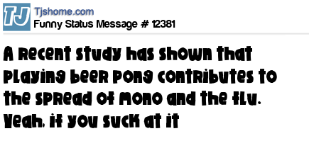 - # 5515 A recent study has shown that playing beer pong contributes to thespread of mono and the flu. Yeah, if you suck at it.