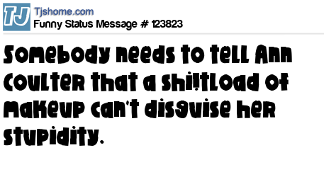 X is Somebody needs to tell Ann Coulter that a shi!tload of makeup can't disguise her stupidity.