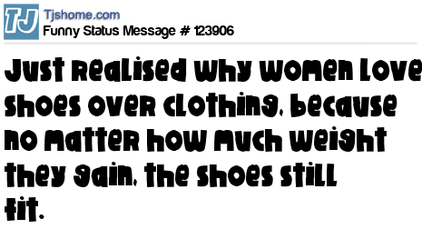 X Just realised why women love shoes over clothing, because no matter how much weight they gain, the shoes still fit.