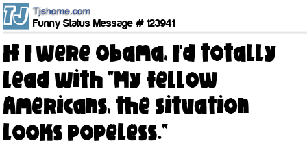X is If I were Obama, I'd totally lead with "My fellow Americans, the situation looks popeless."