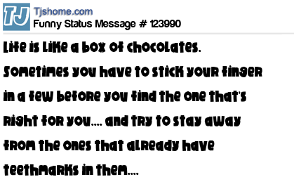 - # 47280 Life's like a box of chocolates. Sometimes you have to stick your finger in a few before you find the one that's right for you....