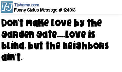 - # 22383 dont make love in your back garden! love is blind but ur neighbours arnt!!