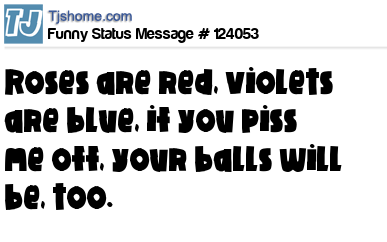 X Roses are red, violets are blue, if you piss me off, your balls will be, too.