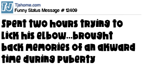 X says Spent two hours trying to lick his elbow...brought back memories of an akward time during puberty