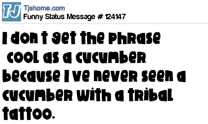 X says I don’t get the phrase “cool as a cucumber” because I’ve never seen a cucumber with a tribal tattoo.