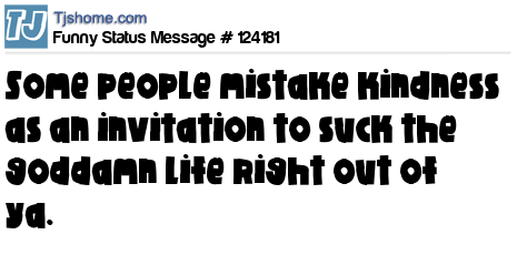 X says Some people mistake kindness as an invitation to suck the goddamn life right out of ya.