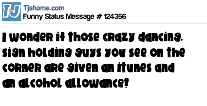 X says I wonder if those crazy dancing, sign holding guys you see on the corner are given an itunes and an alcohol allowance?
