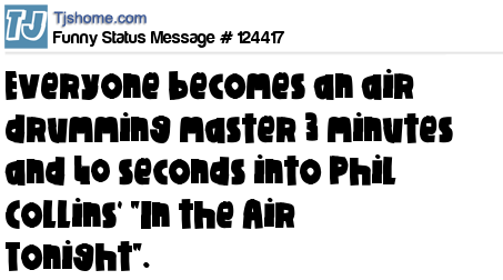 X says Everyone becomes an air drumming master 3 minutes and 40 seconds into Phil Collins' "In the Air Tonight".