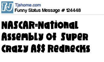 X NASCAR=National Assembly Of Super Crazy A$$ Rednecks