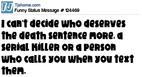 X says I can't decide who deserves the death sentence more, a serial killer or a person who calls you when you text them.