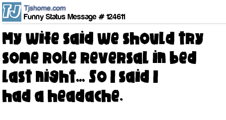 X says My wife said we should try some role reversal in bed last night… So I said I had a headache.