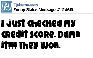 - # 168779 My credit score is so bad I have started receiving pre-declined credit card offers!