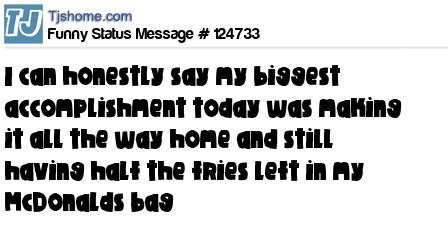 X says I can honestly say my biggest accomplishment today was making it all the way home and still having half the fries left in my McDonalds bag