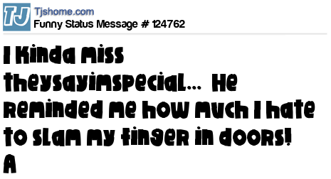 X is I kinda miss theysayimspecial...  He reminded me how much I hate to slam my finger in doors! A