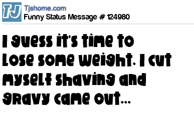 X says I guess it's time to lose some weight. I cut myself shaving and gravy came out...