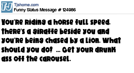 X says You're riding a horse full speed, there's a giraffe beside you and you're being chased by a lion. What should you do? ... Get your drunk ass off the carousel.