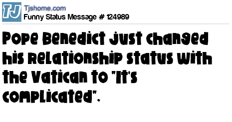 - # 123774 the Pope just changed his relationship status to It's Complicated...