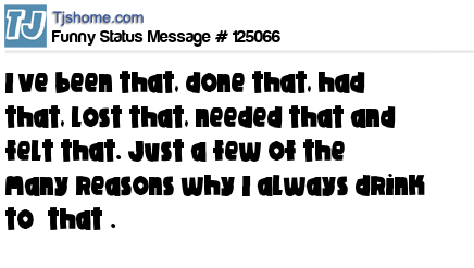 X  I’ve been that, done that, had that, lost that, needed that and felt that. Just a few of the many reasons why I always drink to “that”.
