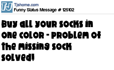 - # 173569 when couples get married they should be required to each give up 1 sock & put them together to make a pair of socks....later on if they divorce they get their sock back. "Master has given me a sock. I am free"
