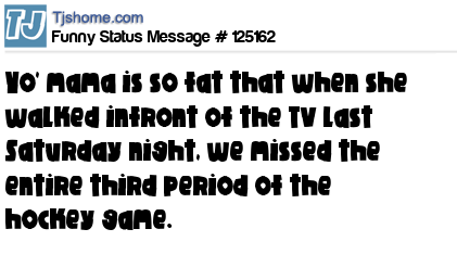 X  yo' mama is so fat that when she walked infront of the TV last Saturday night, we missed the entire third period of the hockey game.