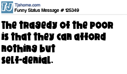X The tragedy of the poor is that they can afford nothing but self-denial.