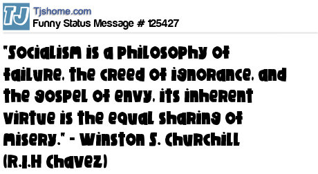 X says "Socialism is a philosophy of failure, the creed of ignorance, and the gospel of envy, its inherent virtue is the equal sharing of misery." - Winston S. Churchill (R.I.H Chavez)