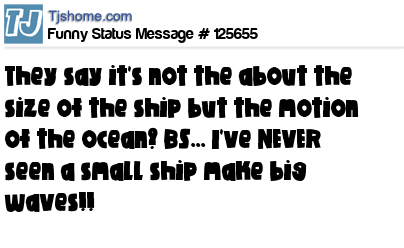 - # 125302 It's not about the size of the ship but the motion of the ocean... I've never seen small ships make big waves!!! Just sayin'......