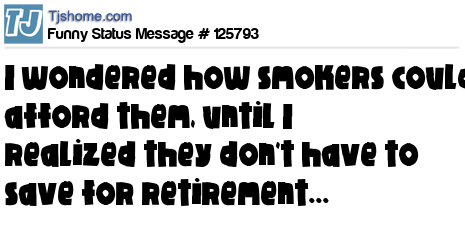X says I wondered how smokers could afford them, until I realized they don't have to save for retirement...