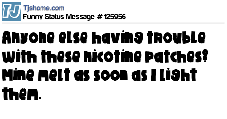 - # 38658 nicotine patches are great !! stick one of each eye and you cant find your cigarettes..