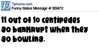 X  11 out of 10 centipedes go bankrupt when they go bowling.